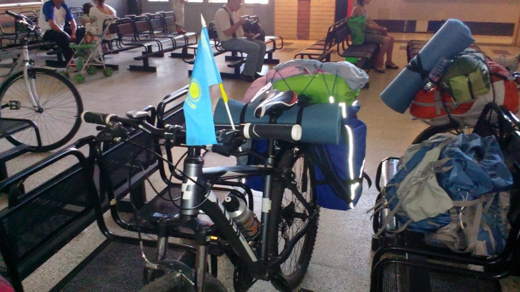 The preparation was intense and there was a feeling of a big big adventure coming up. We had just turned 19 both of us and were running around the city looking for the best deal for bikes and bags, tents and cooking stuff. Finally, we got 2 Cube bikes (similar ones in case there was a problem and we would have the same spare parts) and the rest of equipment. That was also the time when I got my first smartphone, a little refurbished HTC – to be able to have some navigation for the roads and not to carry maps. To add a little touch of color to our bikes, we had also bought 2 little Kazakhstan flags and attached them to handlebars.